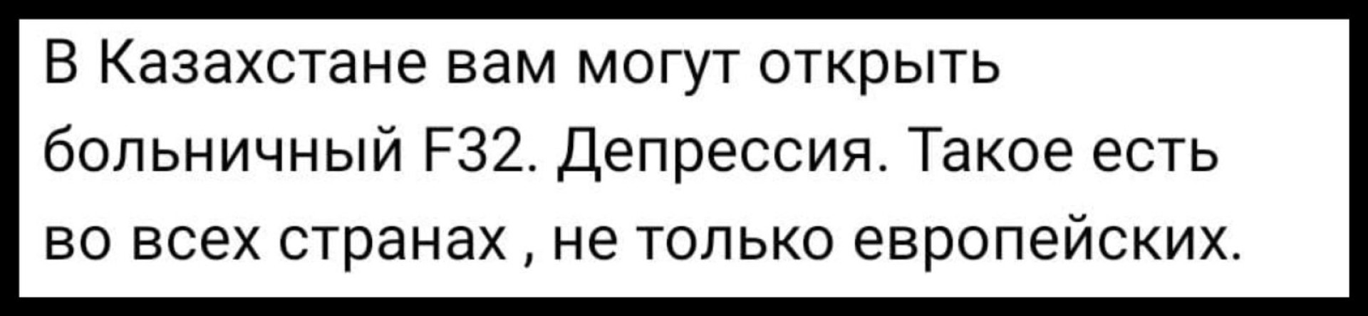 Вопрос о том, возможно ли в Казахстане оформить больничный лист при диагнозе "депрессия", стал актуальным после обращения одной из жительниц страны. Она интересовалась, действительно ли такая возможность существует.