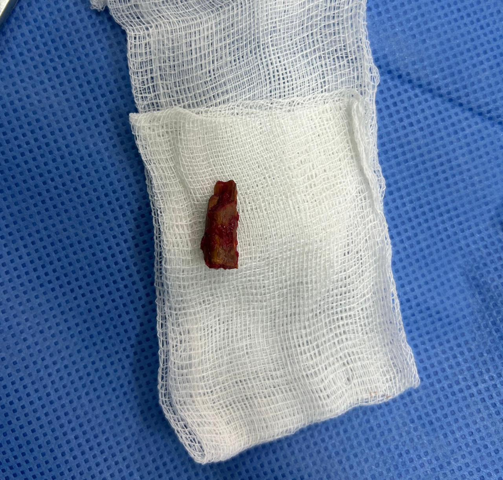 "При осмотре был отмечен отёк в левой височной области, а при пальпации в области скуловой кости обнаружено твёрдое, подвижное образование. После компьютерной томографии головного мозга было найдено инородное тело, которое успешно извлекли во время операции", – рассказали врачи.