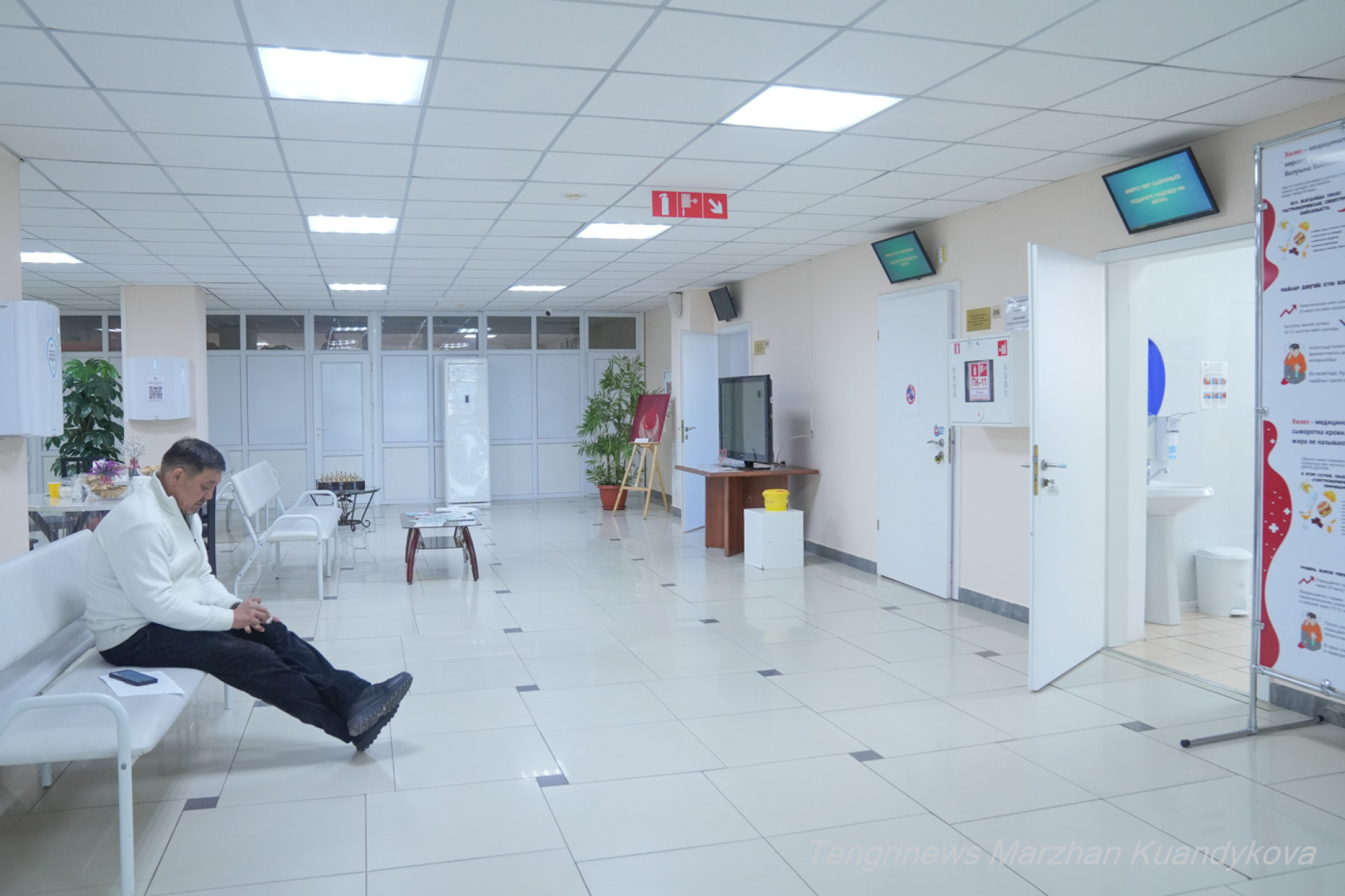 Жетпис Жаманнов ожидает своей очереди в лаборатории. Фото: Маржан Куандыкова