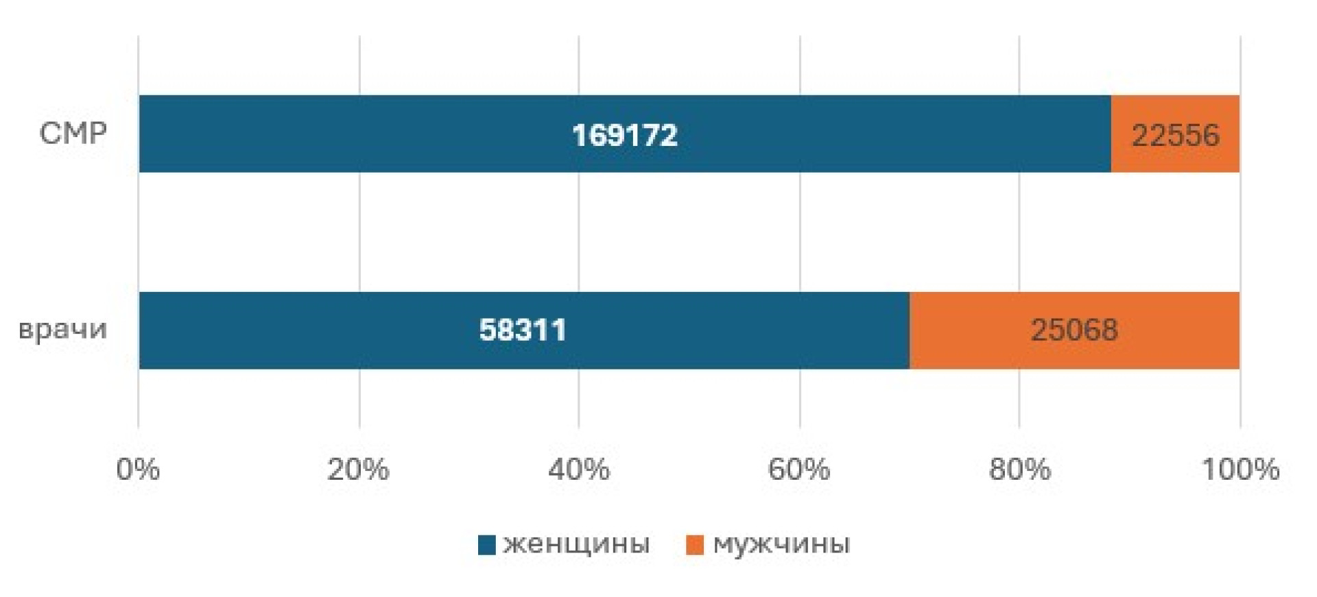 - врачи общей практики — 80% женщин,